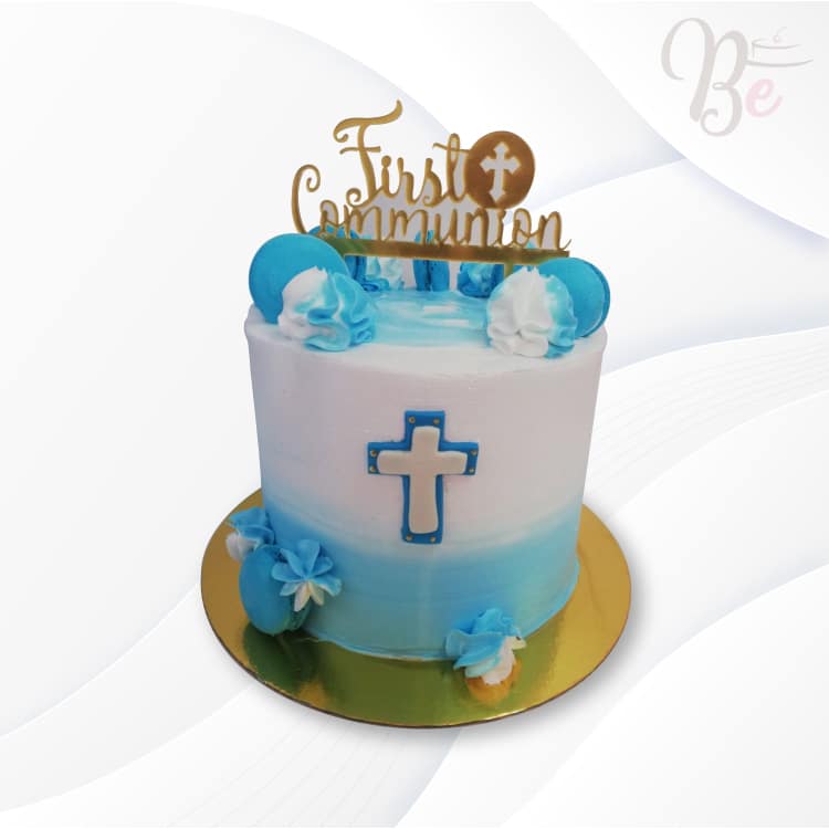 Decorada con detalles en crema de color blanco y azul, la Torta Primera Comunión 2 destaca por su sencillez y significado profundo. Al igual que el modelo anterior, puedes personalizar el sabor del bizcocho, eligiendo entre varias opciones deliciosas, y añadir un mensaje especial que se adapte al homenajeado. Este pastel no solo será una delicia para el paladar, sino también un recordatorio conmovedor de la importancia de la ocasión.
